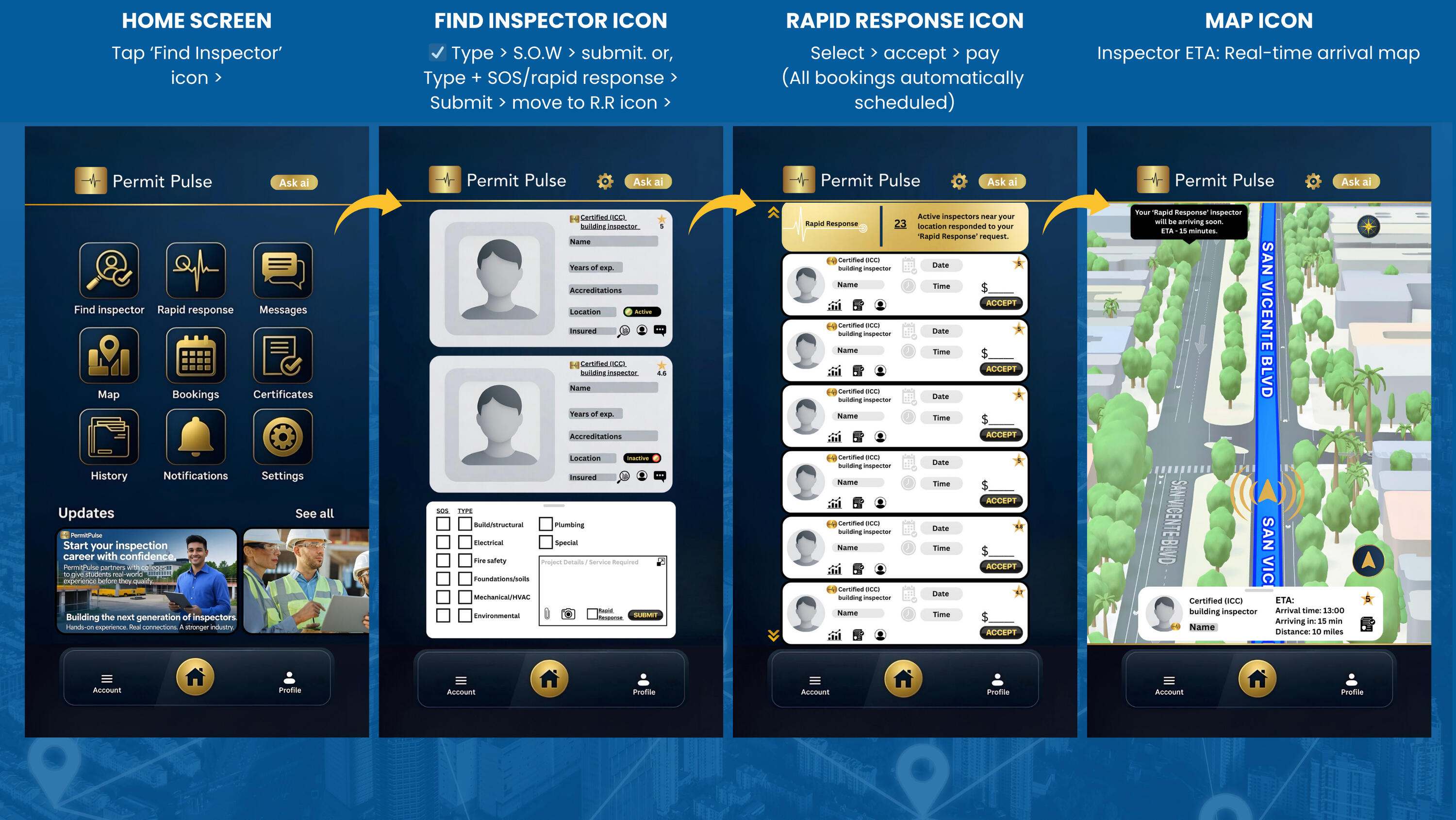 PermitPulse: The first app that instantly matches businesses and homeowners with certified independent inspectors specifically qualified for their exact inspection type, using AI, geolocation, and SOW analysis. Get Emergency Inspections within 48 hours, Rapid Response within 5 days, and support from our growing community crisis-response network: ‘The Pulse’.